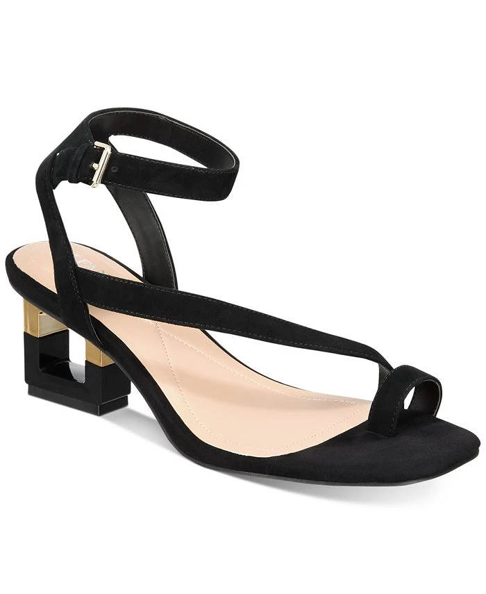 Alfani takes dressy looks to the next level in fashion-forward style with the striking architectural heel and sleek strappy silhouette of the Coreena sandals.