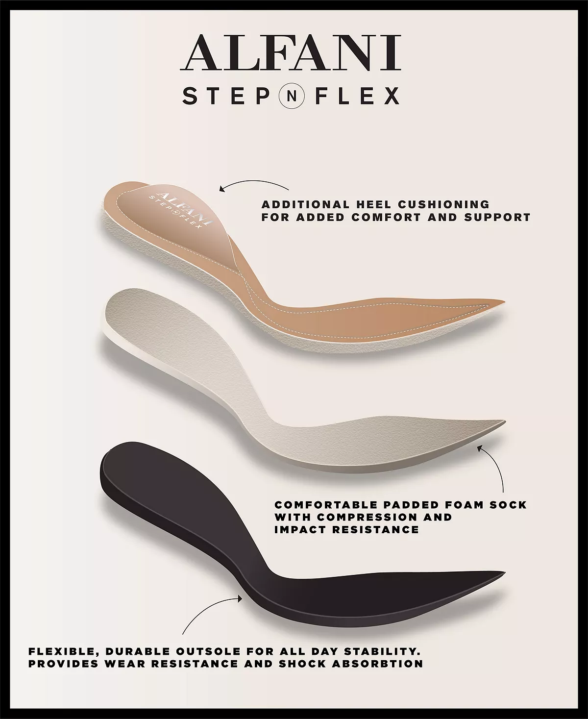 Sleek and stylish from your desk to drinks, Alfani’s Vacanza sandals are fashioned with chic, T-strap styling and demi-wedge heel.