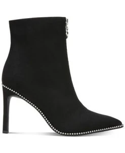- Round-toe ankle booties with inner ankle zipper closure