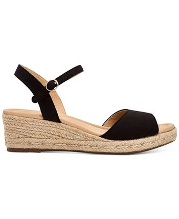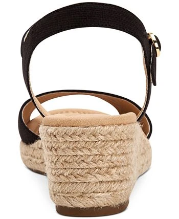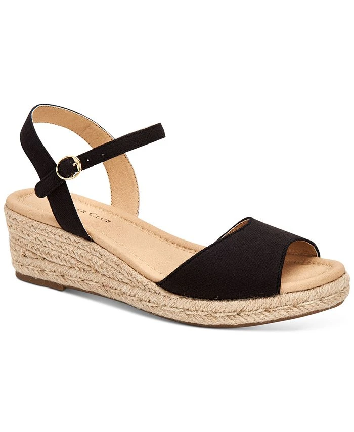 A light espadrille heel and strappy profile lend breezy lift to both dressy and casual looks in Charter Club’s Lucia wedges.