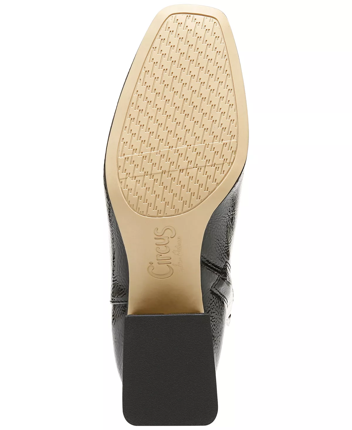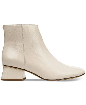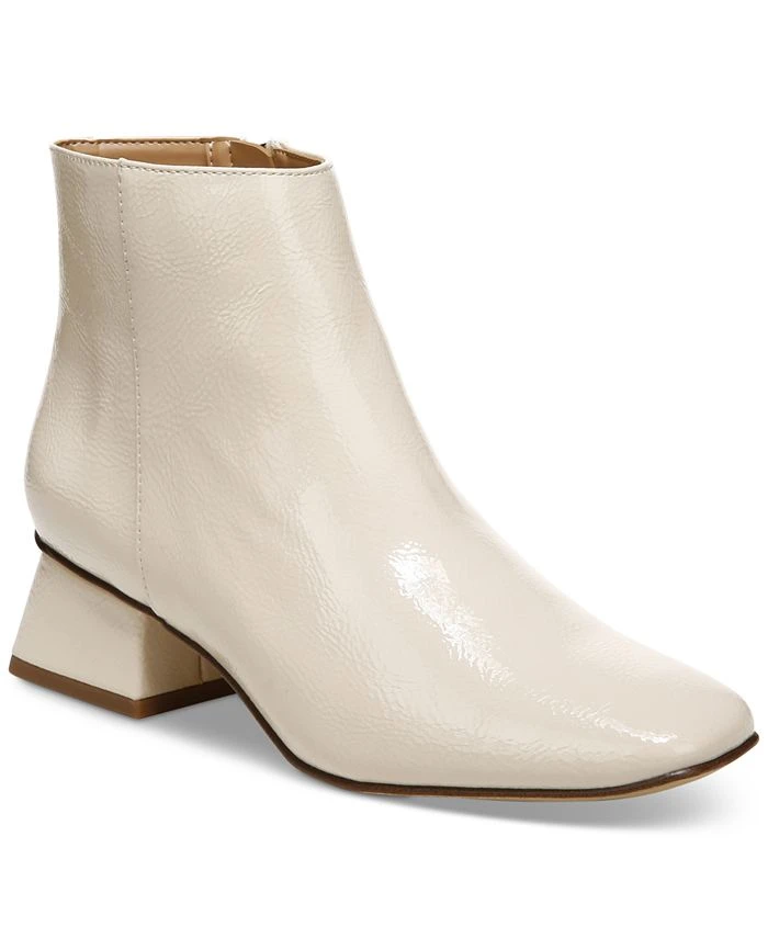 - Square-toe ankle booties with inner ankle zipper closure