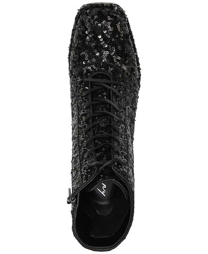 - Square-toe lace-up platform booties with inner ankle zipper closure