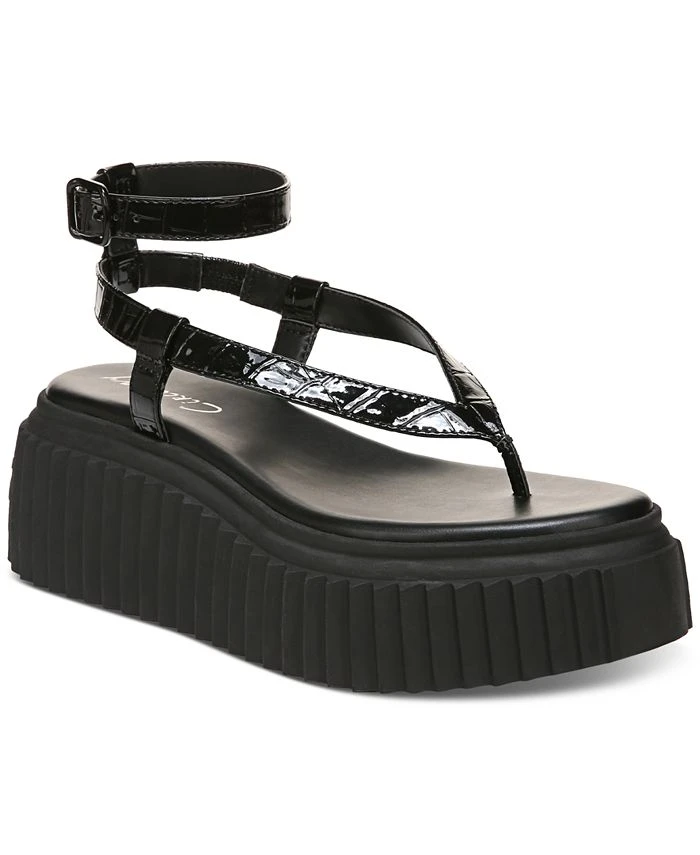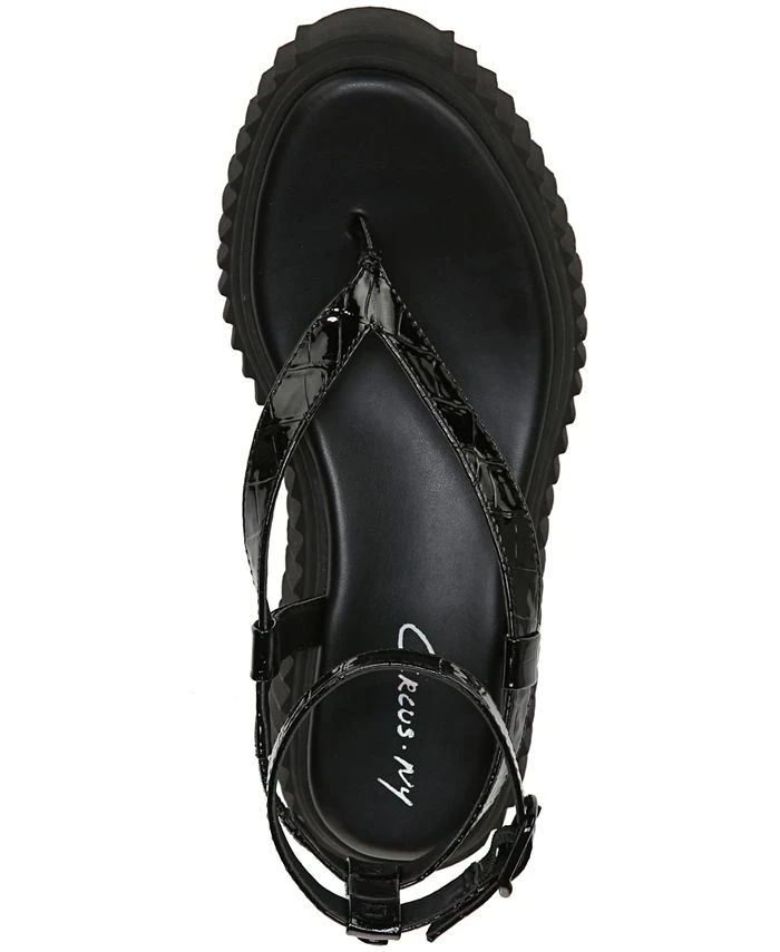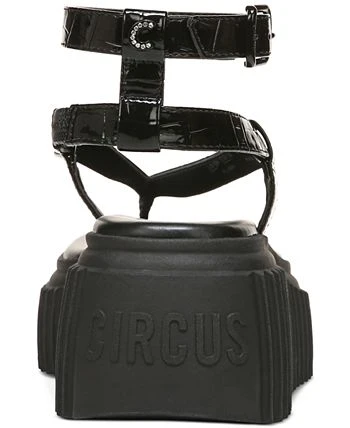 Flip flop styling gets a leg up in the Elana sandals from Circus NY topping chunky platform heels with slender buckled ankle straps.