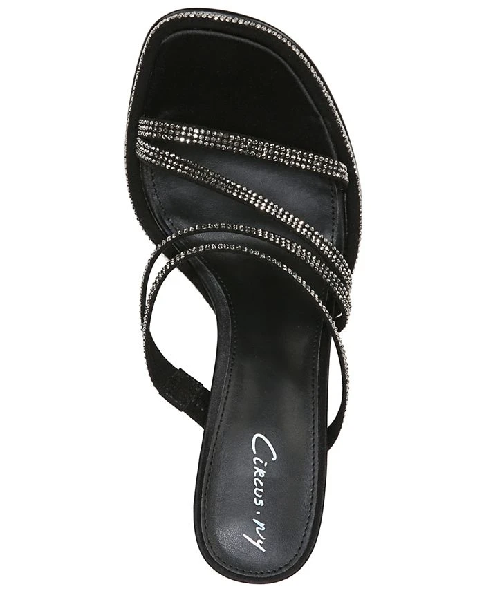 Asymmetrical straps shimmer studded in tiny rhinestones adding sparkling steps to dressy looks with the Circus NY Hanson sandals.