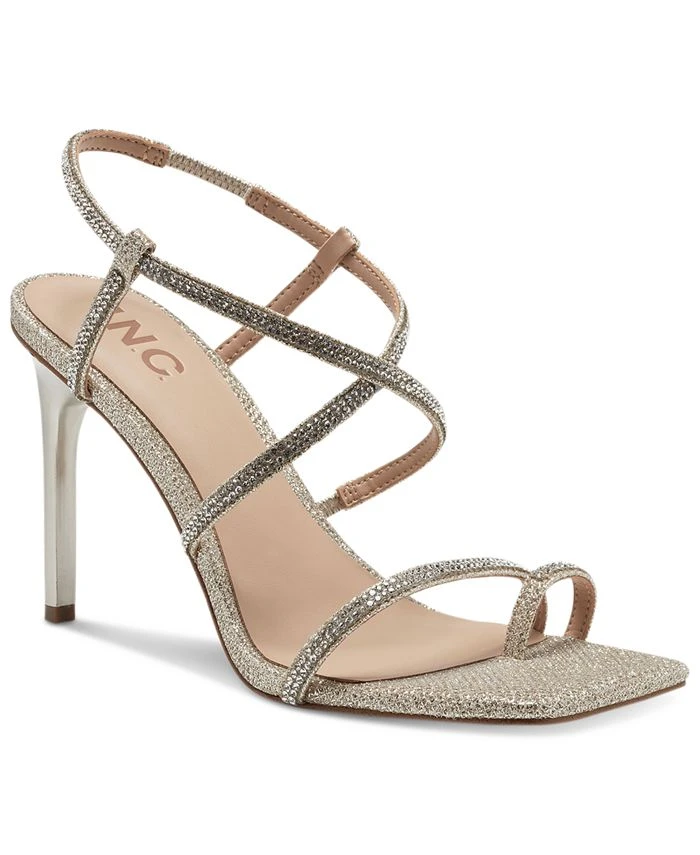 Sparkling straps and a sleek stiletto heel combine with gorgeous definition in the Arti dress sandals from INC International Concepts®.