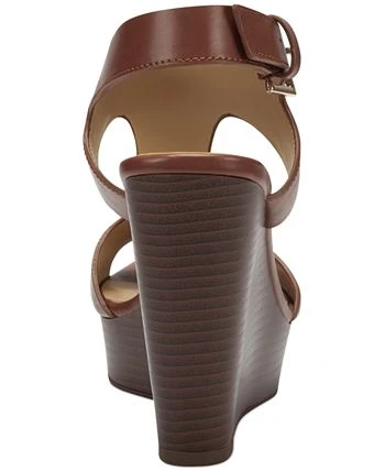 - Round-toe platform wedge sandals with adjustable buckle closure