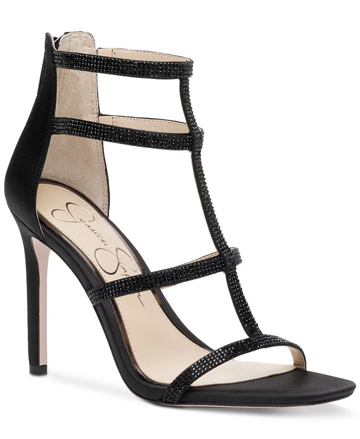 Caged with gladiator-chic appeal, the Oliana sandals by Jessica Simpson elevate dressy looks on slender stiletto heels.