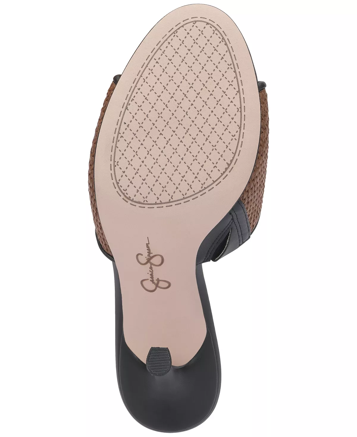 Woven straps trimmed in sophisticated leather pair with stiletto heels for a must-have look in the Kaveri sandals from Jessica Simpson.