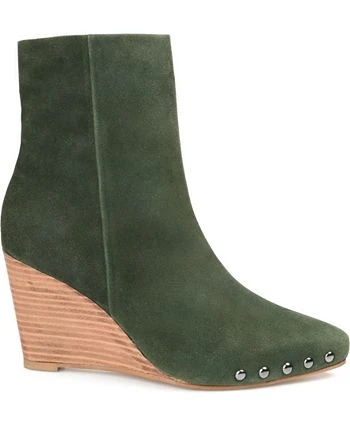 A bootie like you’ve never seen before, the Reeya by Journee Signature. This genuine leather style features an easy zipper entry and a super soft 4mm tru comfort foam insole. A stacked wedge heel and a pointed-toe embellished with round studs boldly finish the design.