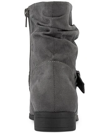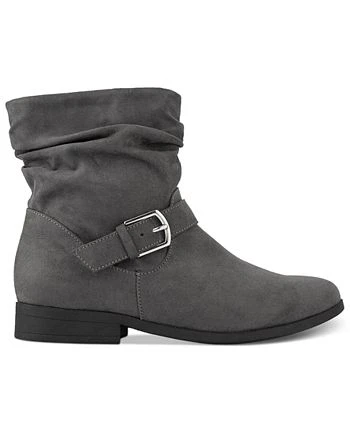 Karen Scott’s Clarett booties are slouched at the shaft with buckled straps dressing up or down with a hint of moto attitude.