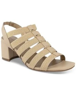 Karen Scott’s Yahnnie sandals dress up or down with the comfort of stretch and stylish block heels.