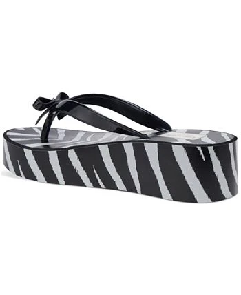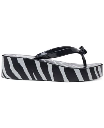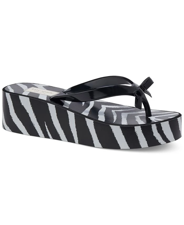 - Round-toe slip-on platform wedge thong sandals