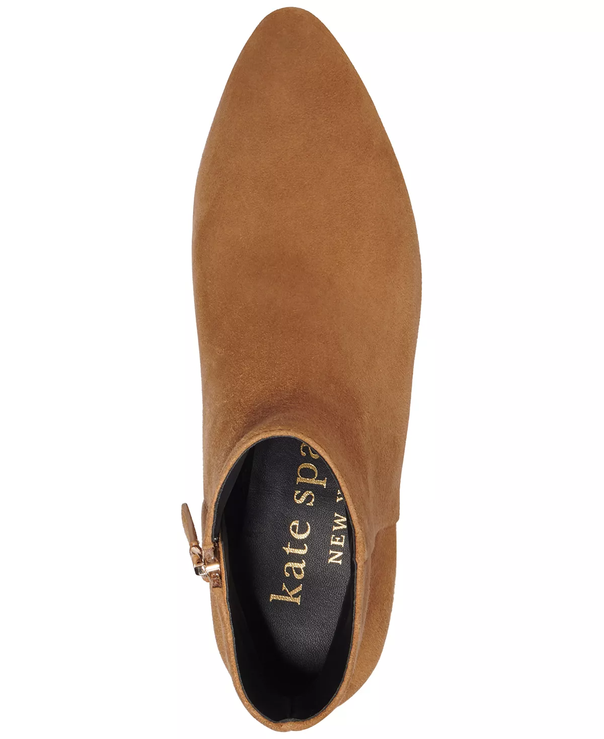 - Pointed-toe booties with inner ankle zipper closure