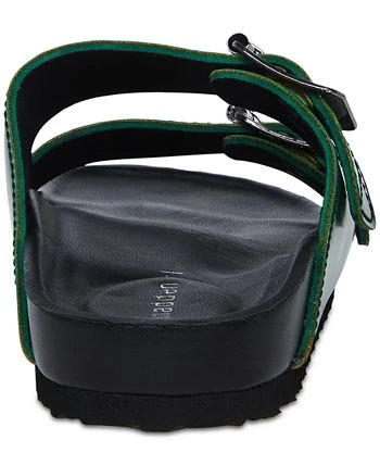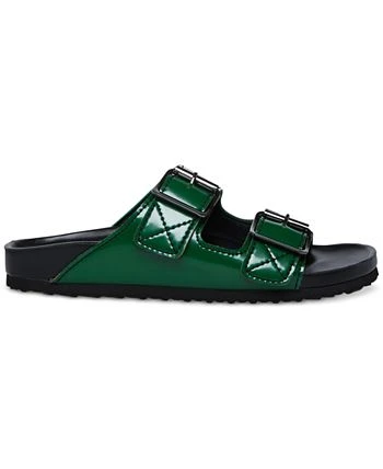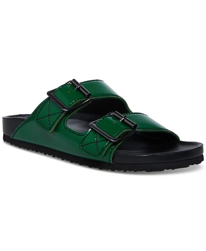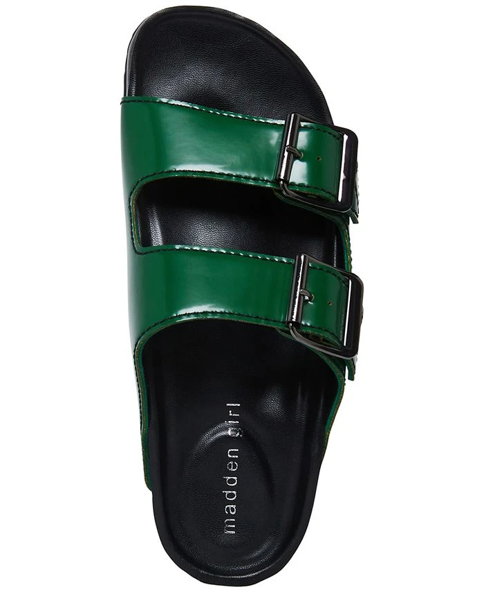 Chunky bands buckle up with contrast stitching atop the comfortable footbed design of the Boxer flat sandals from Madden Girl.