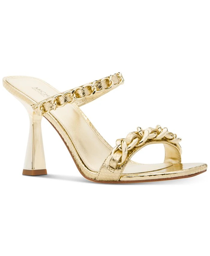 Chain hardware accents a duo of slender straps in the dressy lift of the MICHAEL Michael Kors Clara sandals.