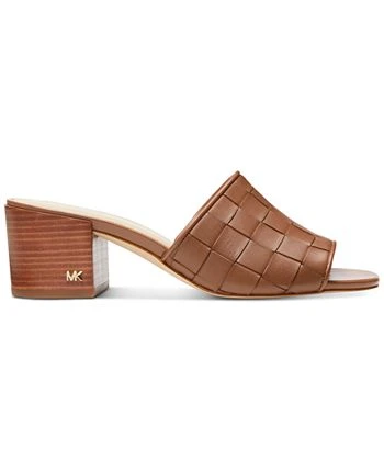 A single wide woven strap tops sensible stacked heels for a go-to dressy look in the Ingrid sandals from MICHAEL Michael Kors.