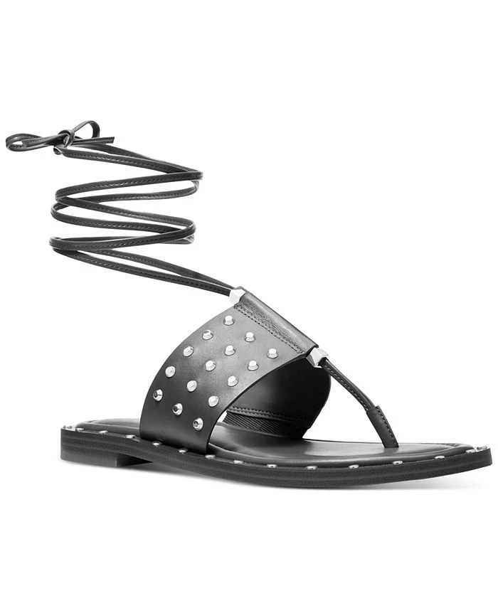 Elegant wrapping ankle ties pair with moto-inspired studs for a fresh addition to warm-weather style in the Jagger sandals from MICHAEL Michael Kors.