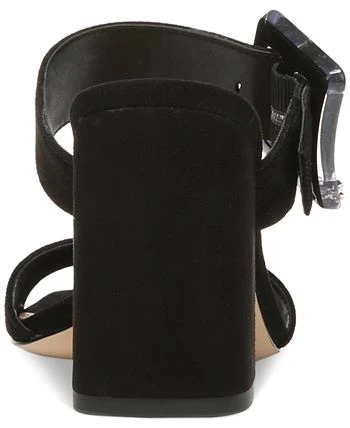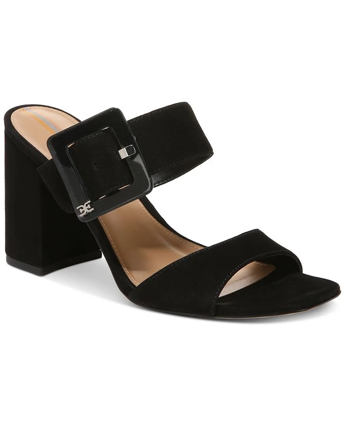 Square buckles accent wide straps atop chunky block heels in the Dalton city sandals from Sam Edelman.