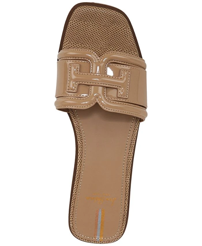 Textural logo detailing at the straps lend sophisticated dimension to a sleek slide silhouette in Sam Edelman’s Irina sandals.