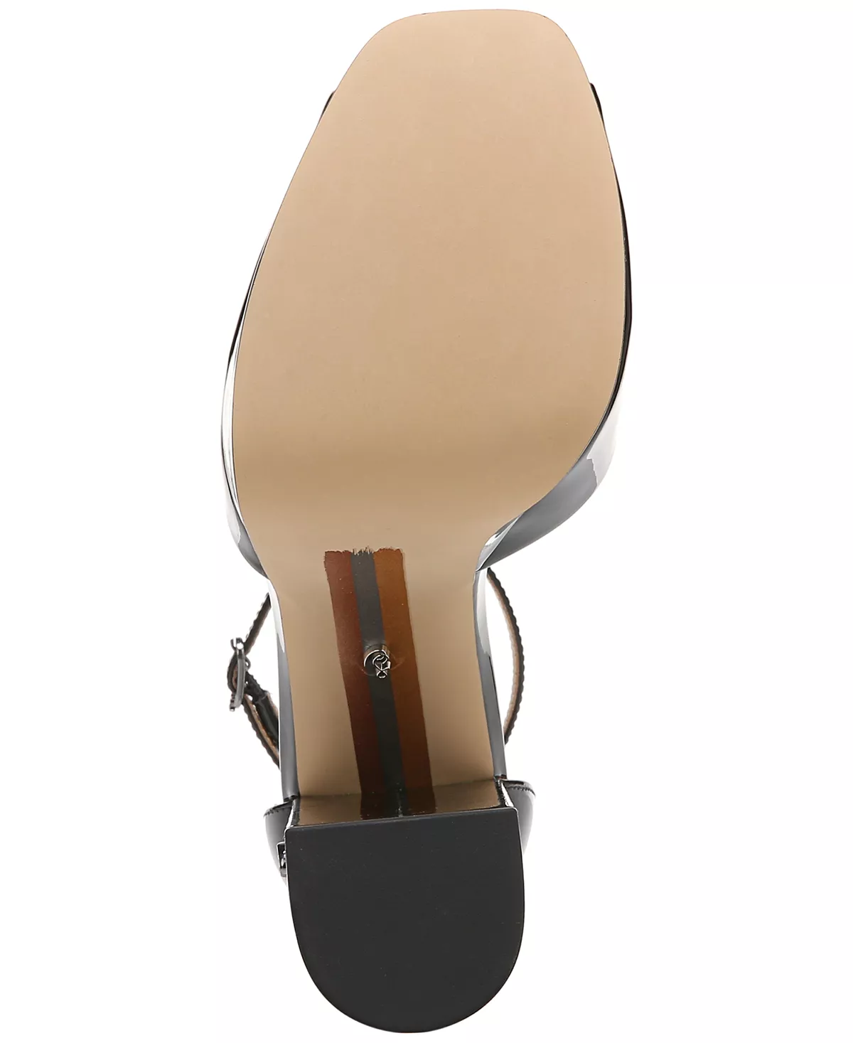 - Round-toe ankle-strap platform dress sandals with adjustable buckle closure