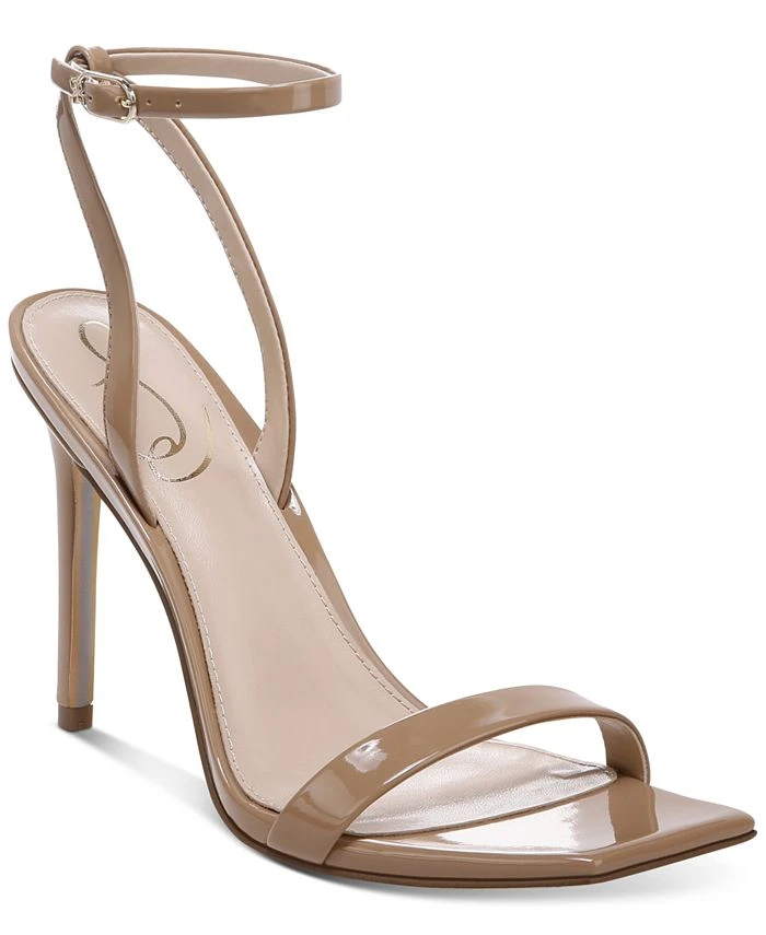 - Square-toe ankle-strap dress sandals with adjustable buckle closure