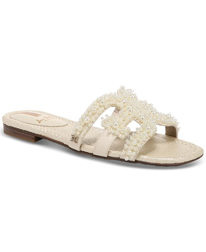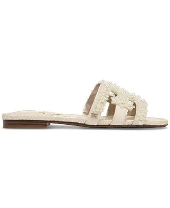 Trimmed with lustrous imitation pearls and intricate beading, Sam Edelman’s Bay Perla sandals take a flat-out glam approach to slide styling.