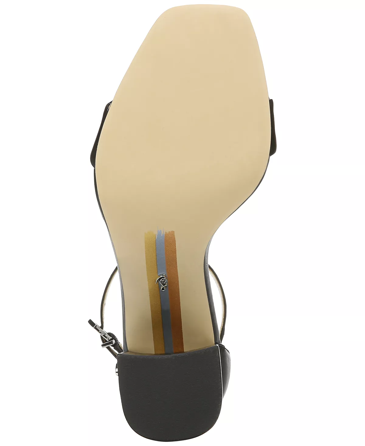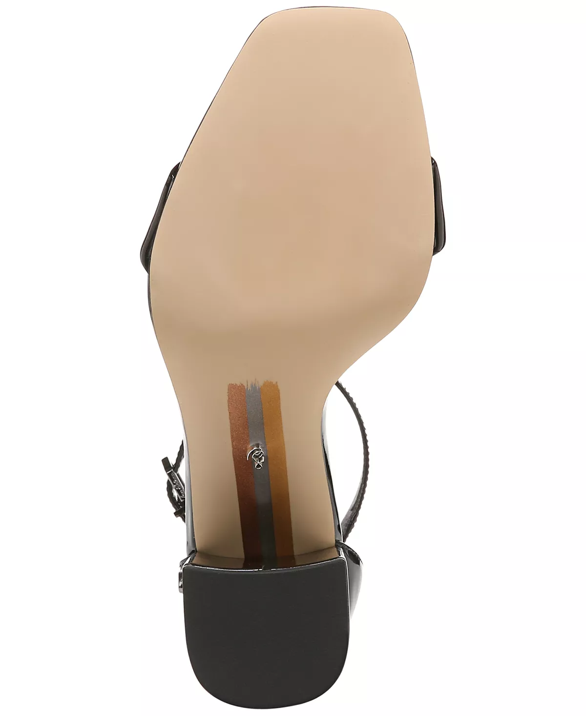 - Square-toe sandals with adjustable buckle closure at ankle-strap