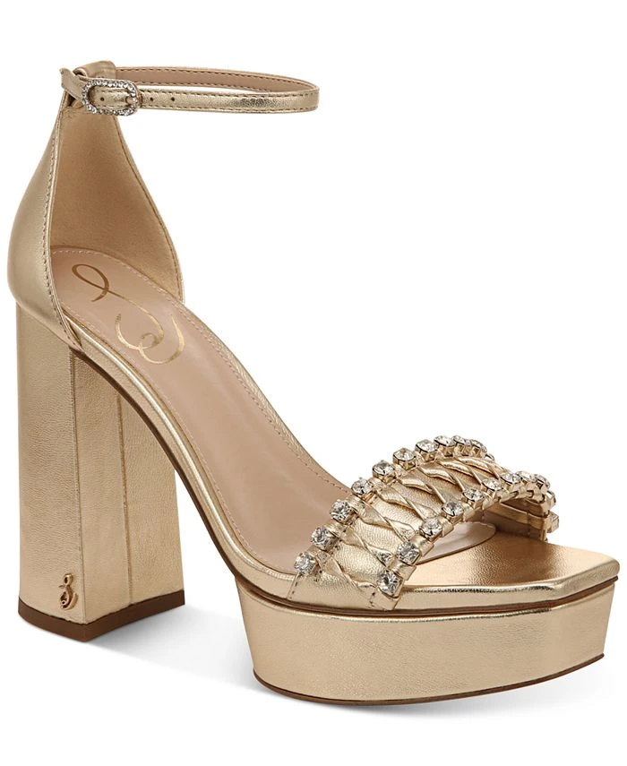 Tiny twists and twinklings of rhinestones accent a beautiful banded design to own the evening in the Ninette platform sandals from Sam Edelman.