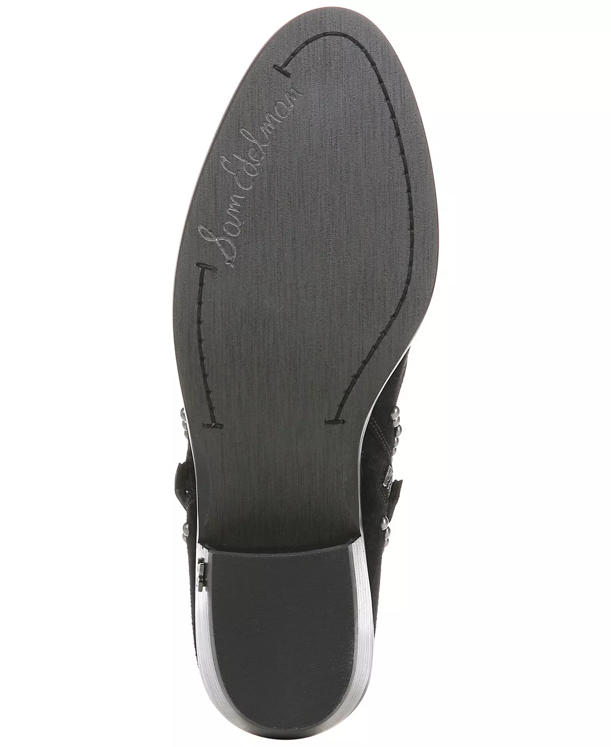 - Nail head stud embellishments at sides and step topline
