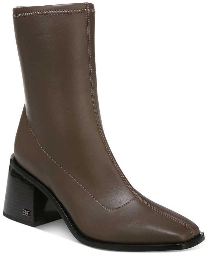 Stylishly shaped in a just-right height, block heels take a comfortable stance in the cushioned Wells stretch booties from Sam Edelman.