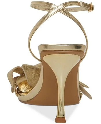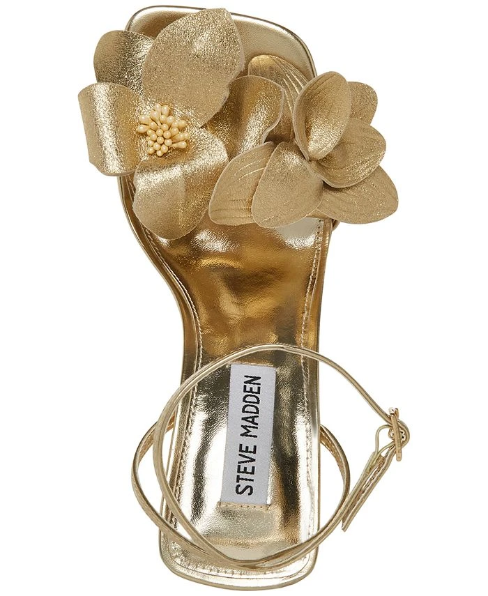 Floral accents bring dimensional sophstication to slender straps and stiletto heels in the Amani sandals from Steve Madden.