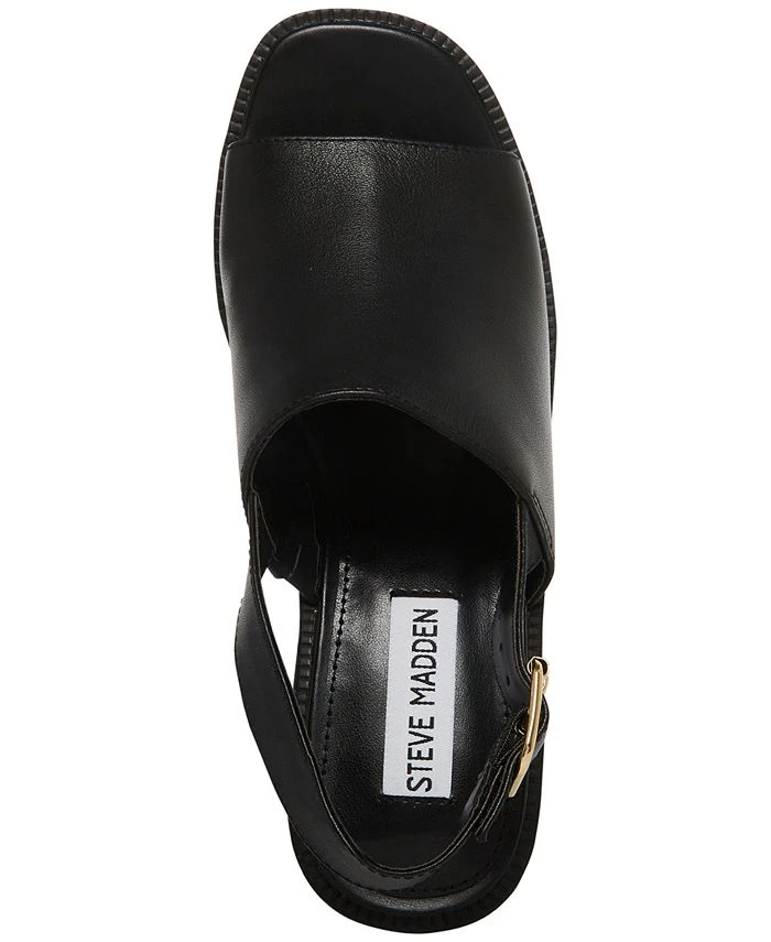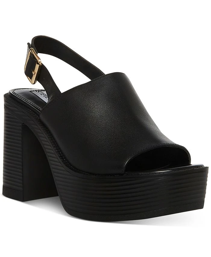 Over-the-top platforms bring retro-inspired lift to a sensible slingback profile in the Buffet sandals from Steve Madden.