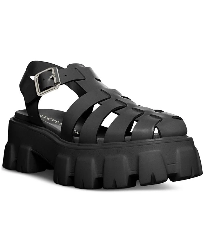 Lug platforms lend a chunky boost to classic fisherman stylings in the woven Echo sandals from Steve Madden.