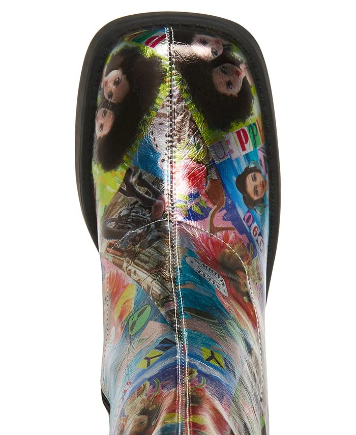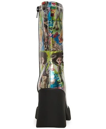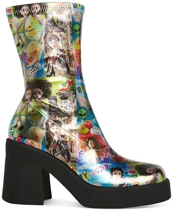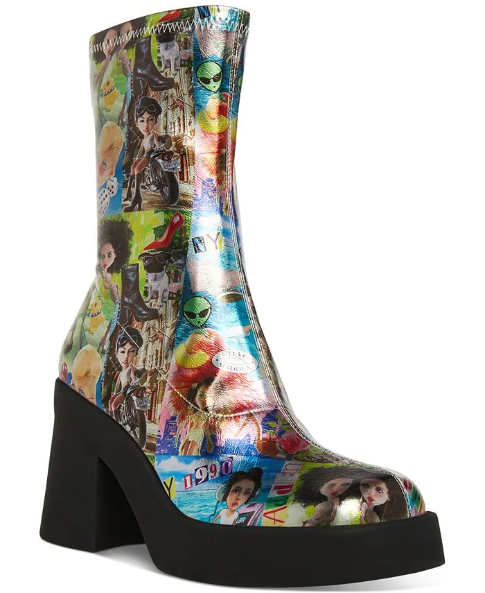 - Square-toe platform booties with inner ankle zipper closure