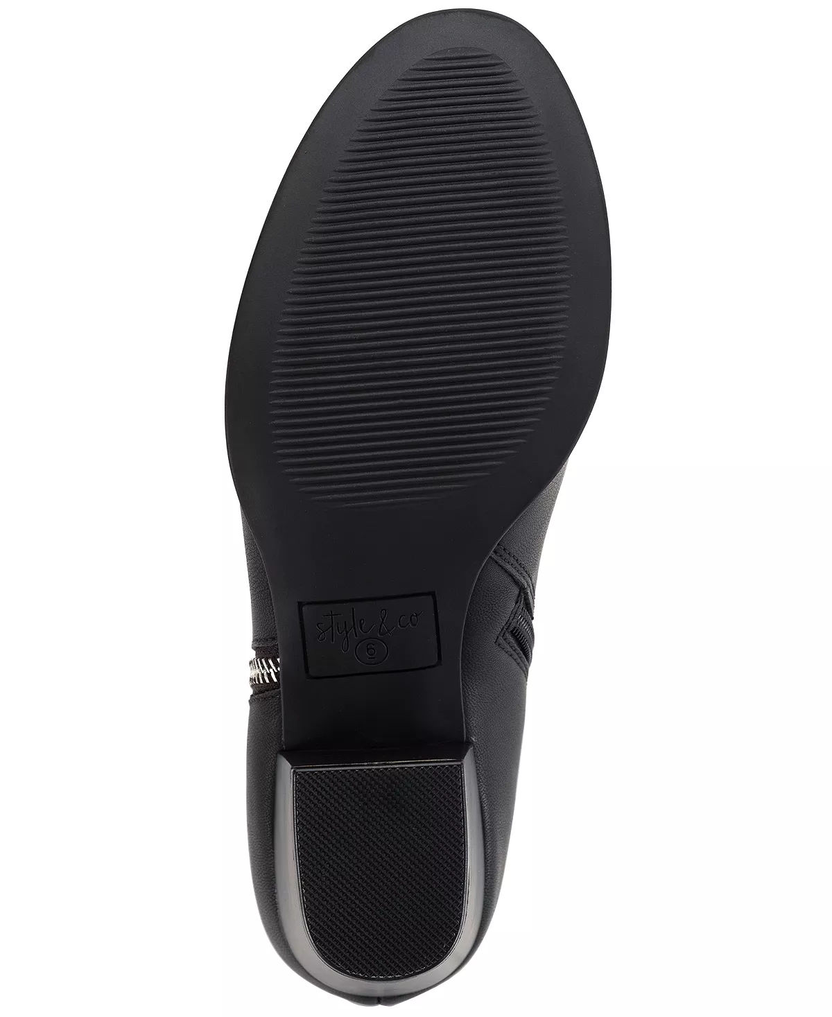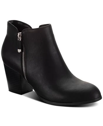 Style & Co’s Masrinaa booties curve gently along the topline, coming to a V where two fashionable zippers line up the sides.