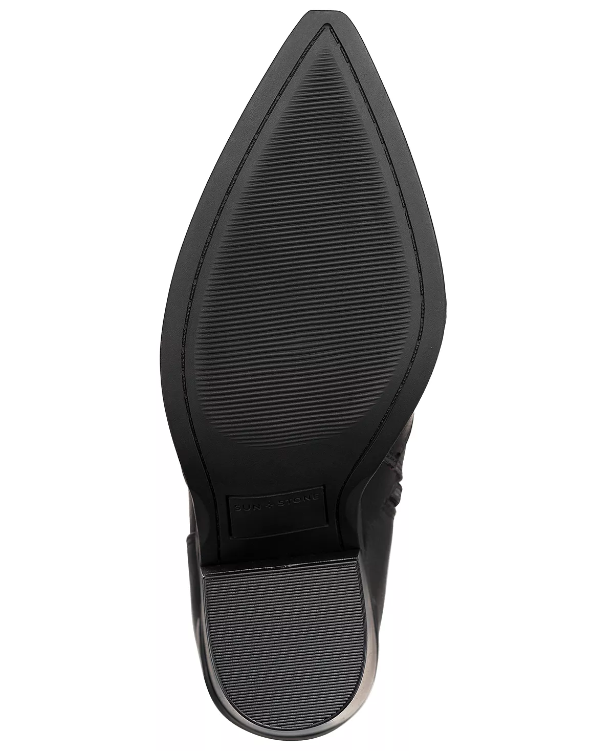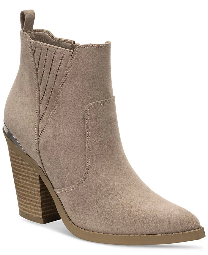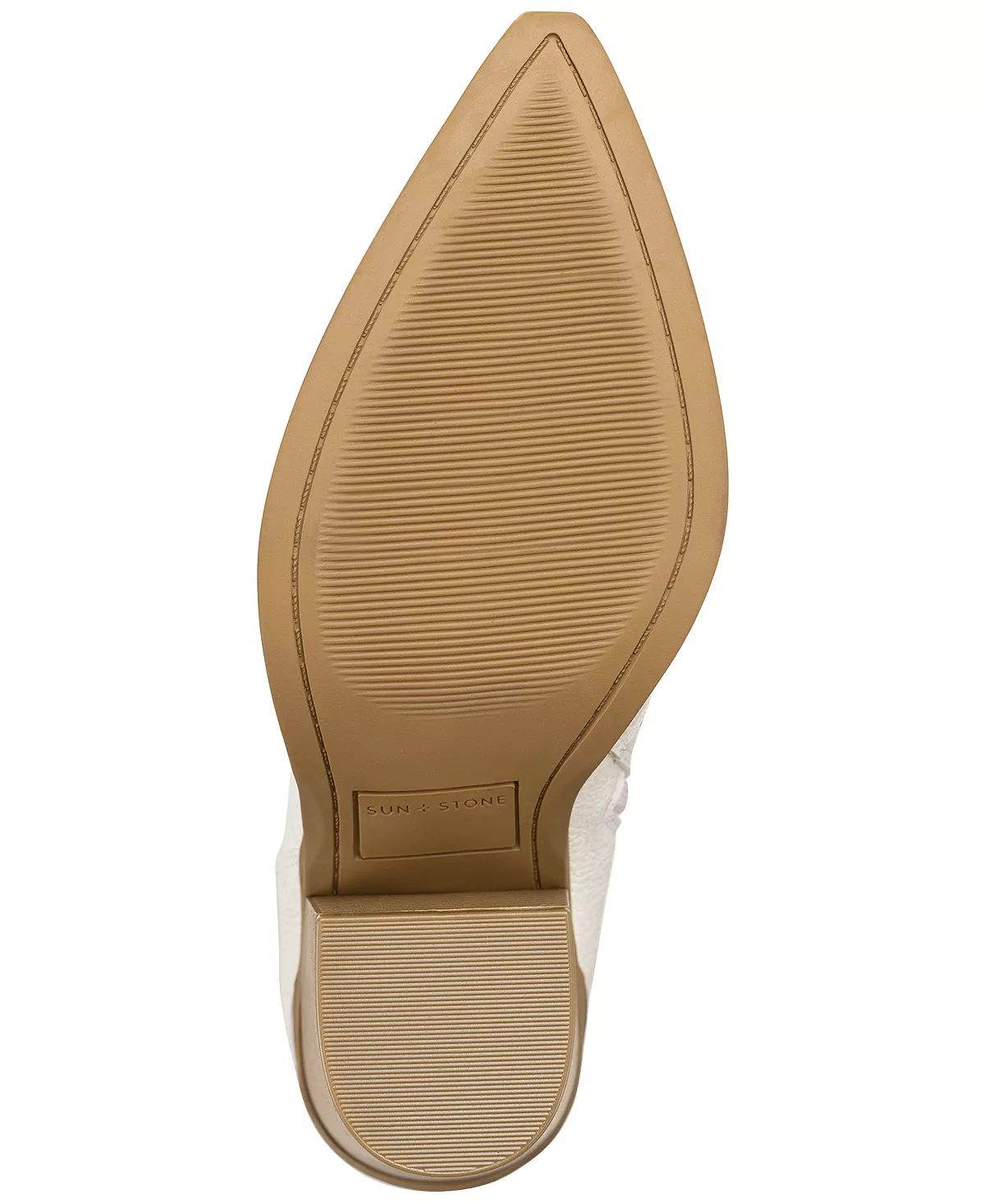 Western inspiration pairs with dressy block heels and comfy memory foam in the chic Abigail booties from Sun + Stone.