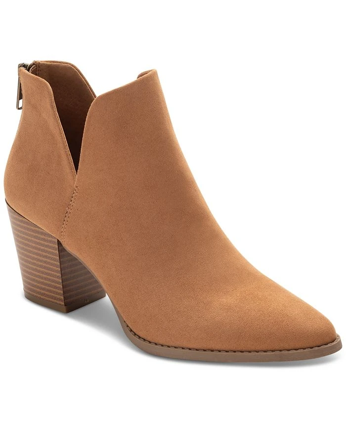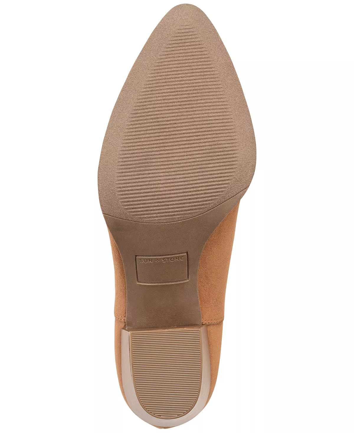 Plunging V-notch cutouts complete the boho-chic look of Sun + Stone’s Elizaa booties for a must-have addition to any wardrobe.