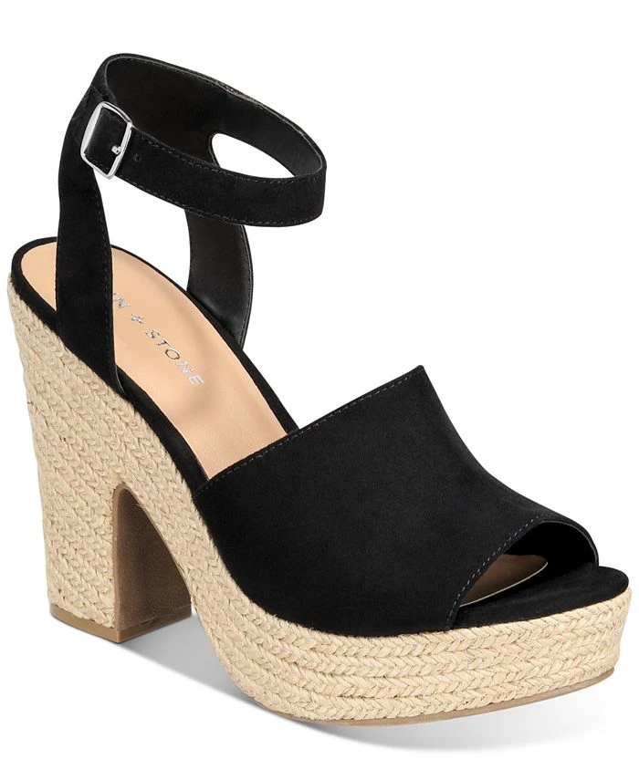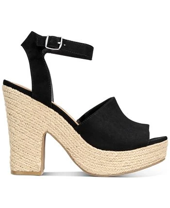 - Round-toe ankle-strap espadrille platform dress sandals with adjustable buckle closure