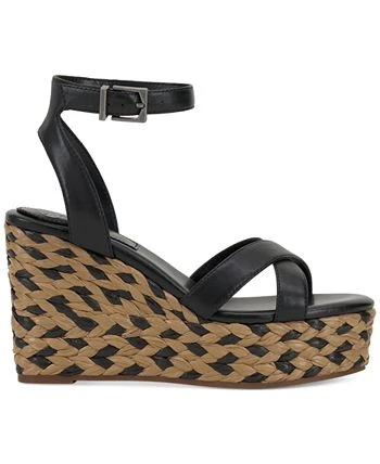 Woven espadrille wedges take the Fettana sandals from Vince Camuto through the roof on towering platforms and sturdy ankle straps.
