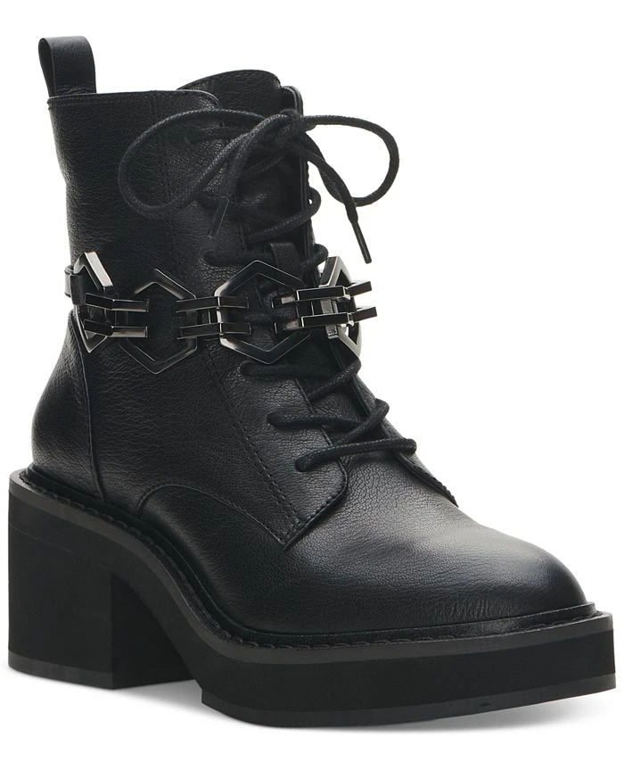 Bold chain detailing adds extra edge to the assertive design of Vince Camuto’s Keltana lace-up side-zip combat booties.