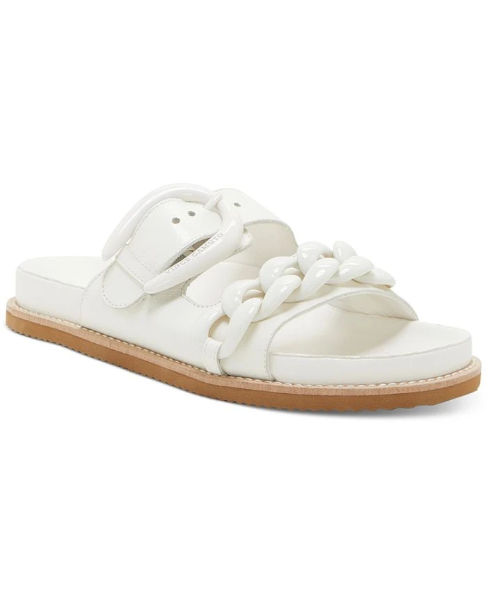Robust chain links and bold buckling bring uncommon style to the Kenendys footbed sandals from Vince Camuto.