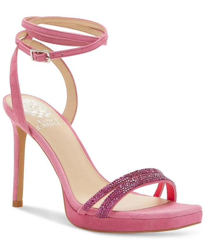 Stacked on chic stiletto heels, the wrapping ankle-strap design of the Kiahna platform sandals from Vince Camuto elevate dressy looks.