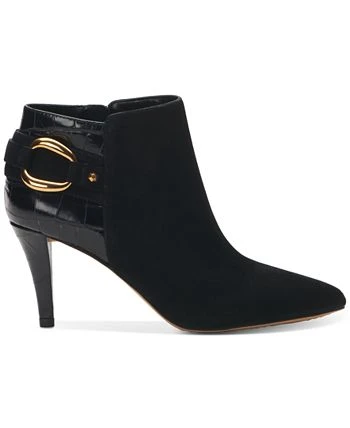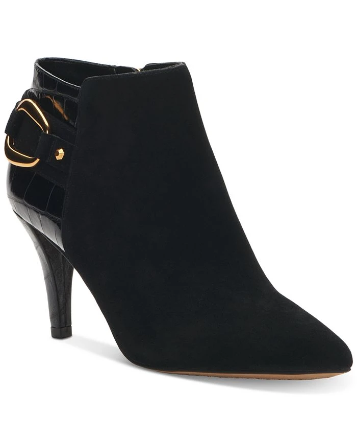 Shapely stilettos and gold-tone hardware add fresh flash to dressy looks in the Selmente booties from Vince Camuto.